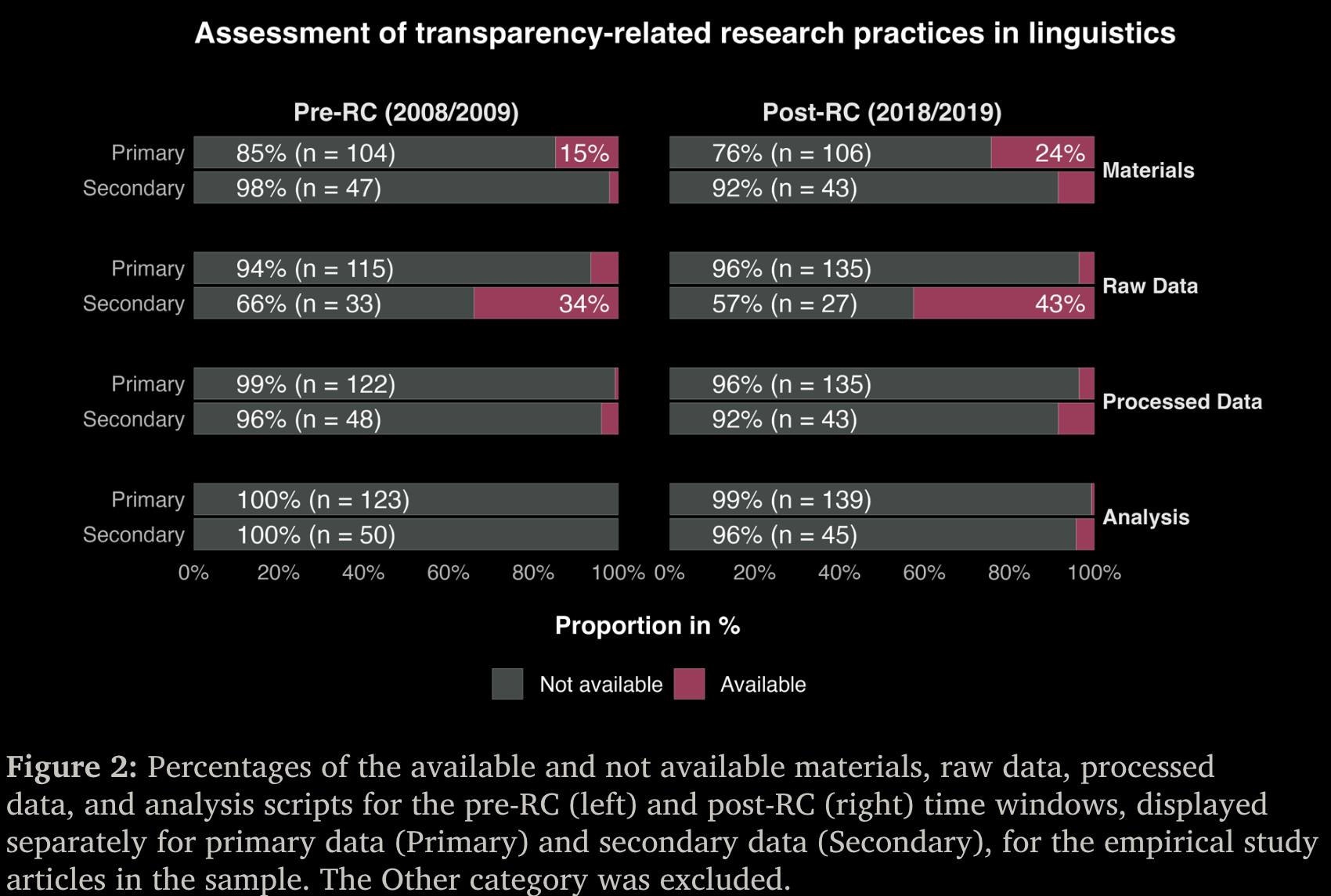 Bochynska, A., Keeble, L., Halfacre, C., Casillas, J. V., Champagne, I.-A., Chen, K., Röthlisberger, M., Buchanan, E. M., & Roettger, T. B. (2023). Reproducible research practices and transparency across linguistics.