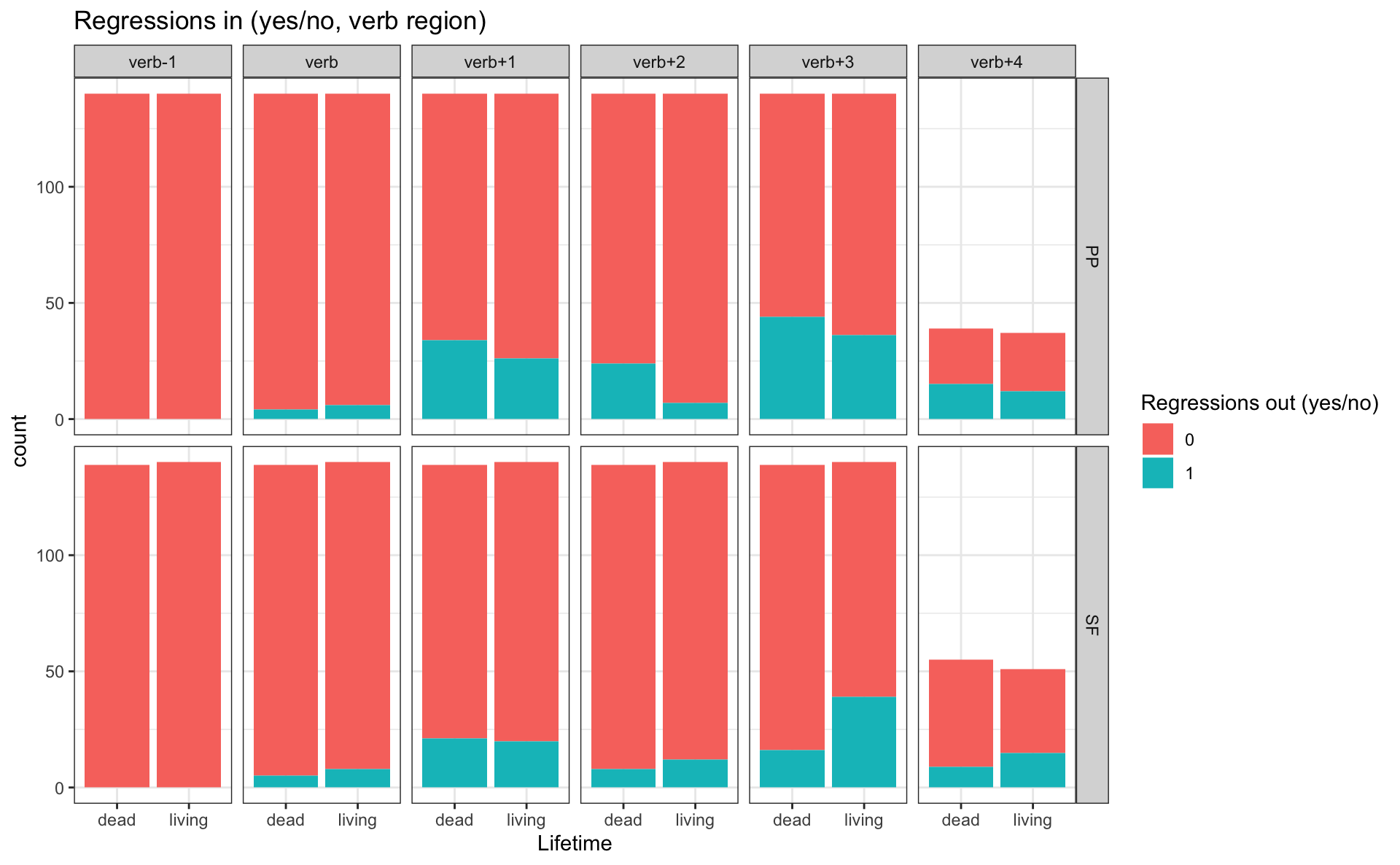 reg_in at the verb1 regionreg_out for all sentence regionsfacet_grid()
