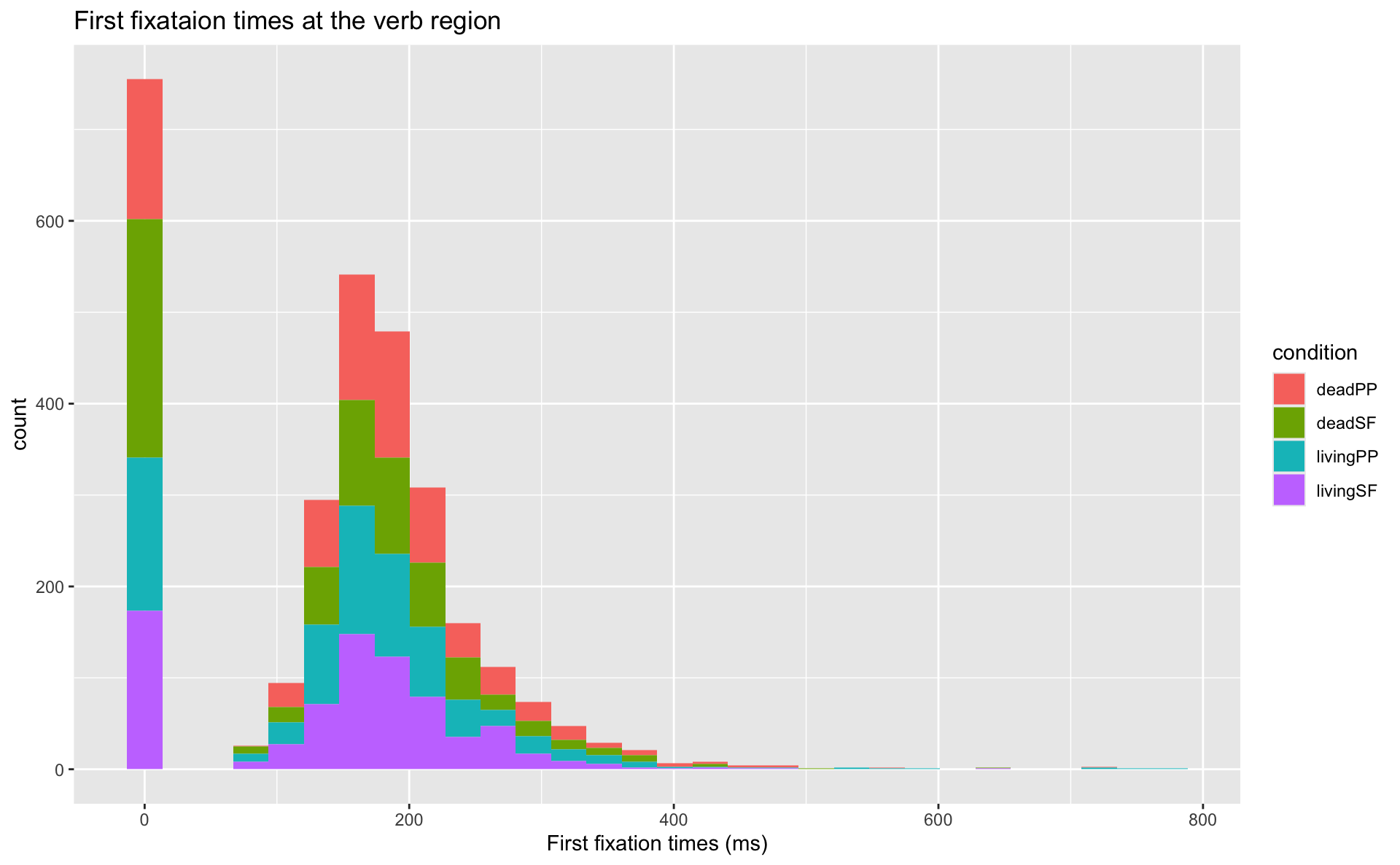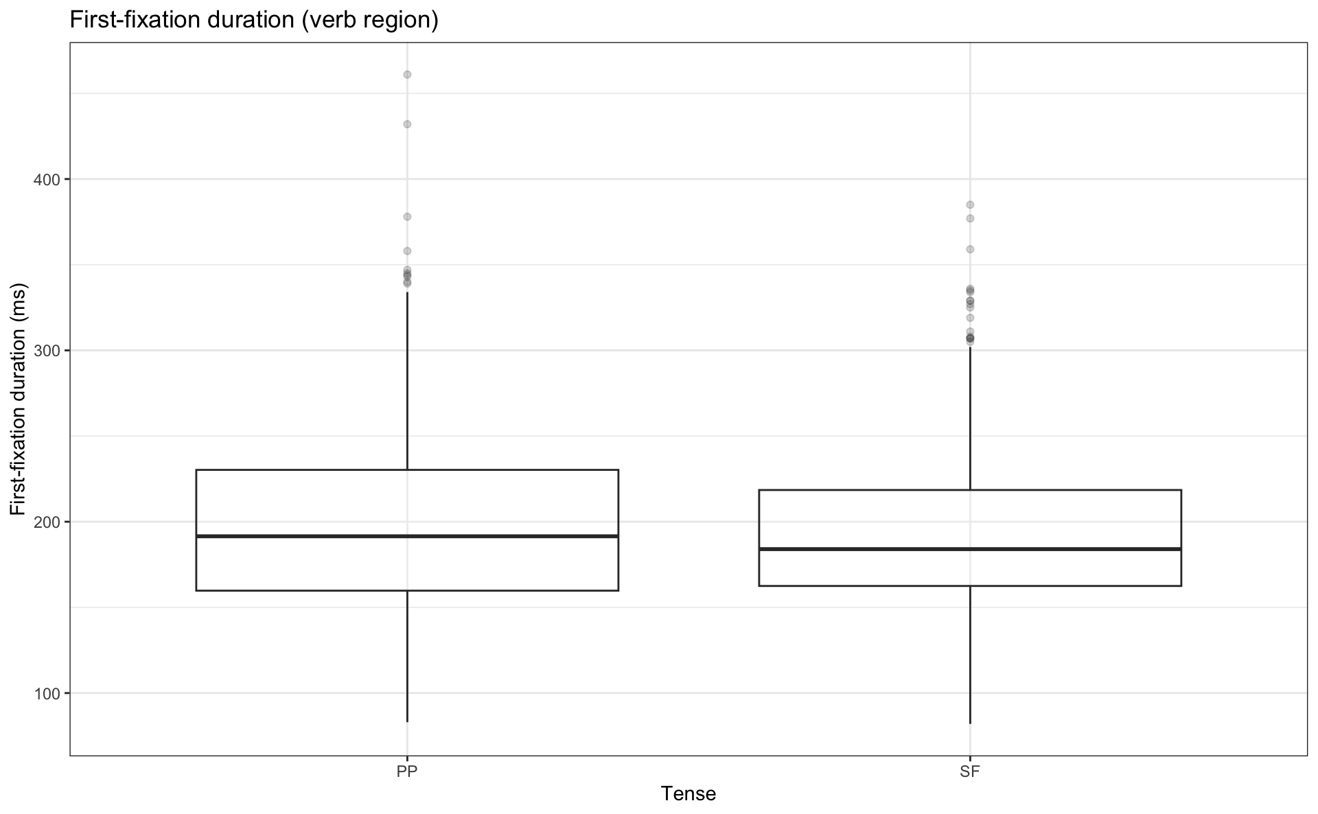 labs(title="Mean first-fixation times (verb region) with 95% CIs",