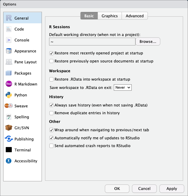 # for headings, *italics*, **bold**)README.md in youR-Project directoryTools > Global Options
